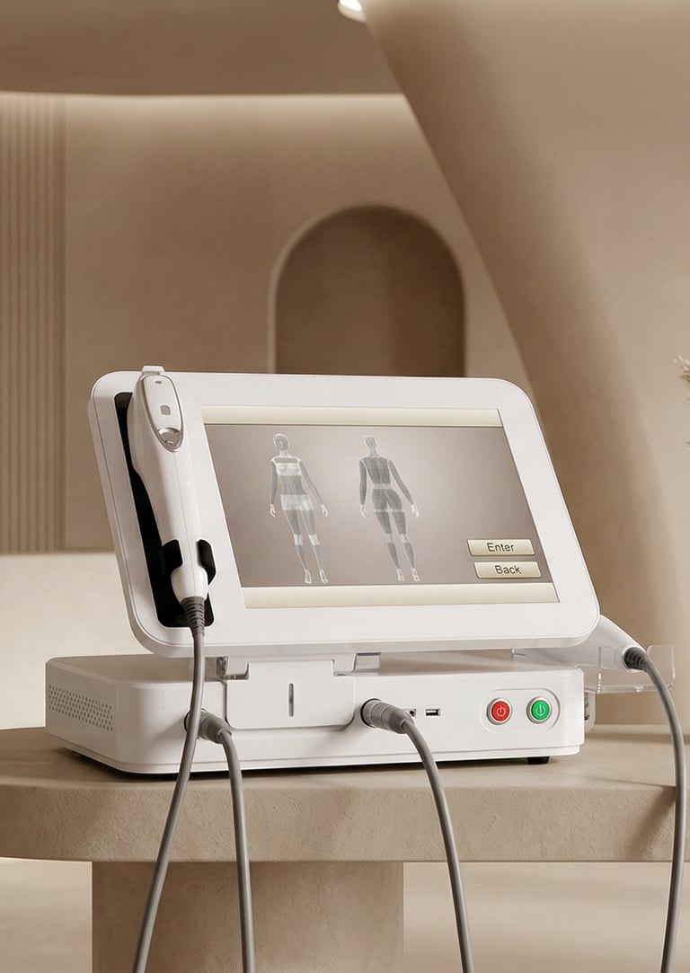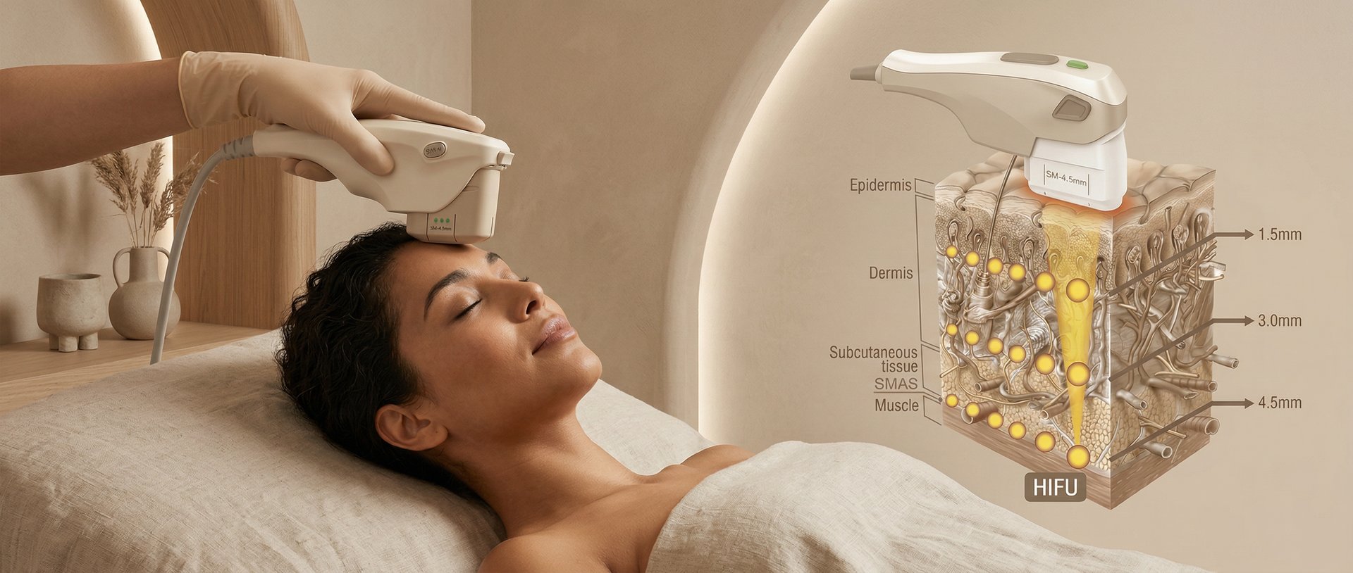 Tecnología de ultrasonido focalizado de alta intensidad que estimula colágeno en profundidad, ayudando a tensar, redefinir y mejorar la firmeza del rostro sin cirugía.